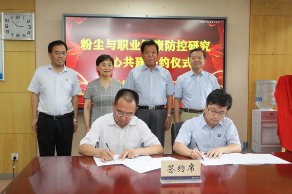 王德学指出中国特色社会主义发展进入新时代,创建健康企业,消灭职业危害因素、保障安全生产、让劳动者体面劳动,依然任重而道远,没有全民健康,就没有全面小康。贯彻国家战略,需要从理论上、科技上、管理上开展研究,给企业、政府的决策做支撑。两校共建“粉尘与职业健康防控研究中心”具有时代性、前瞻性、战略性,强强联合、优势互补,将产生强大的动力,助力国家职业健康发展。