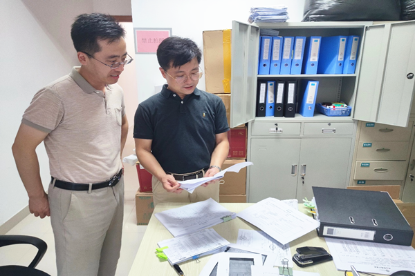 查阅国家临床实验中心(Ⅰ期病房)相关材料(摄影:彭成)