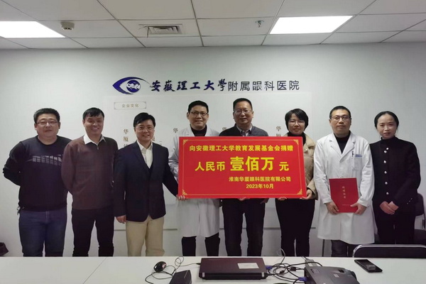 会后,医学院向安徽理工大学附属眼科医院赠捐献牌匾和捐赠证书。