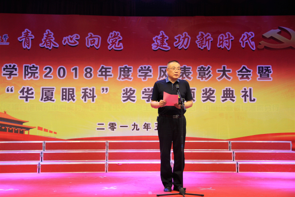 5月31日,医学院在钻石剧场成功举办“青春心向党建功新时代”学风表彰大会暨“华厦眼科”奖学金颁奖典礼。淮南华厦眼科医院总经理曹长列、学院党委书记刘群红、党委副书记李颖、行政院长李文月和部分获奖学生及各年级学生代表,共300余人参加了表彰大会。
