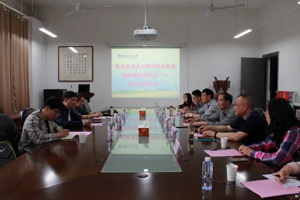 5月14日下午,北京煤科院战略规划研究院院长胡炳南研究员、陈家祥总工程师等一行三人到医学院调研交流职业病防治工作。能源与安全学院院长华心祝教授,医学院党委书记刘群红教授、副院长张超教授等热情接待了来宾,并在医学院C114会议室进行了座谈交流。