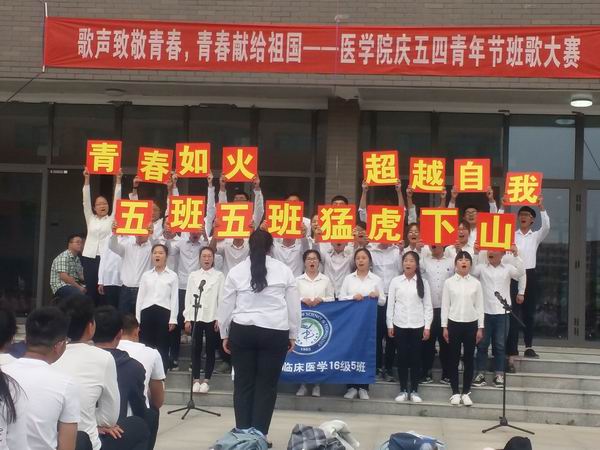 为纪念“五四运动”99周年,大力弘扬“五四”精神,唱响青春爱国主旋律,展现新时代新青年风采,5月4日下午,医学院在崇仁楼南门广场举办庆祝“五四”班歌大赛。医学院2016级13个班级全部参加,评委由医学院田晔、李春霞、穆敏、陈冉、魏元一、高志奎六位老师担任。