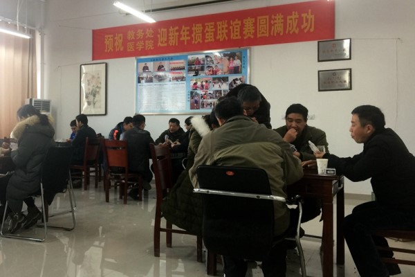 1月14日上午9点,医学院与教务处在医学院职工之家举行迎新年掼蛋联谊赛。教务处及医学院主要领导参加了比赛。