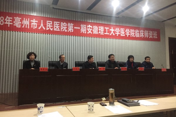 1月13日安徽理工大学医学院临床教学师资培训班在亳州市人民医院举行。教务处处长黄友锐教授、医学院院长张荣波教授、亳州市人民医院邓华院长出席了培训班的开幕式并全程参加了培训班。南方医科大学第一临床学院(南方医院)方国存、郑维扬、余庆云3位教授授课。培训班由亳州市人民医院院长助理荣令主持,医院李含君副院长作总结发言。