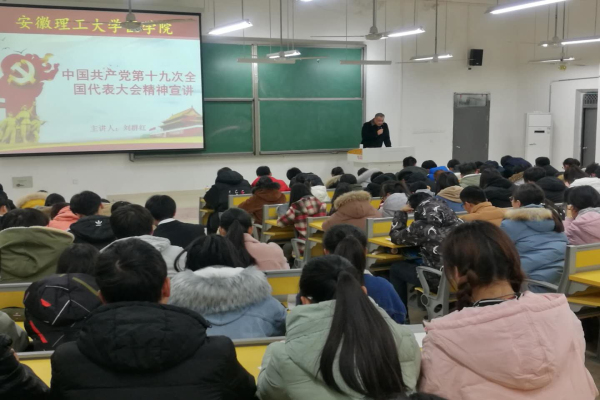 刘群红从党的十九大胜利召开讲起,以党的十九大报告内容为主线,列提纲分层次地解析党的十九大报告的精神。“青年兴则国家兴,青年强则国家强。青年一代有理想、有本领、有担当,国家就有前途,民族就有希望……”。他把当代青年学生的综合素质培养与党的十九大报告中提出的“青年观”结合起来,综合阐述了青年一代是国家的未来,全面分析了医学生未来的发展方向和美好前景。他激励青年学生为国家的医疗卫生事业、为实现“两个一百年”奋斗目标、为实现中华民族伟大复兴的中国梦而不懈奋斗。