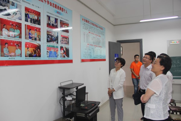 孙齐云一行实地查看了中国红十字基金会第68期乡村医生培训班报到现场,对学校为培训班所做的大量前期准备工作表示感谢,对现场志愿者的细致入微的接待表示赞扬;走访了我校医学院红十字会办公室、学生活动室和应急救护培训室。