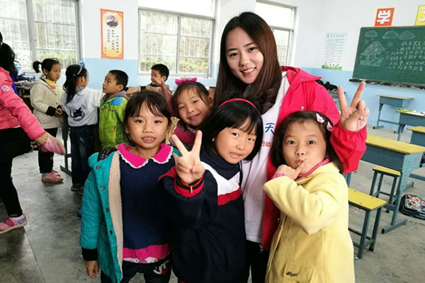 徐通与孩子们做游戏(摄影:其他志愿者提供)