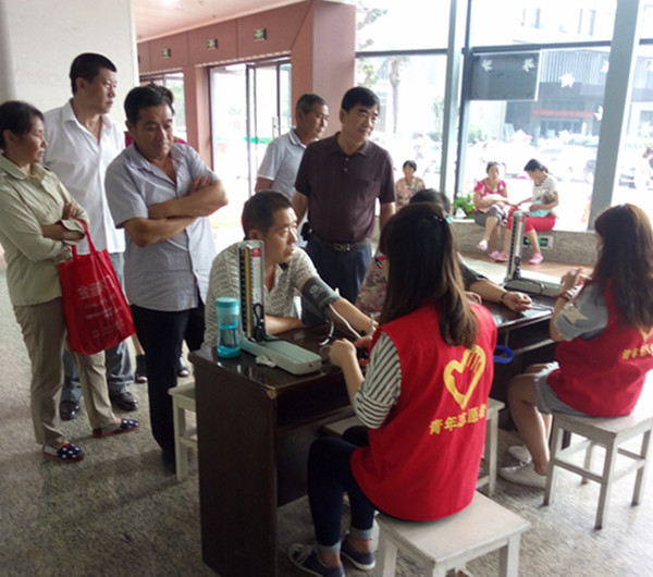 8月28日,志愿者们在医院门诊大厅为候诊的患者及家属提供义诊义检服务,测量血压,宣传并讲解健康小知识,消除患者对健康问题的疑虑。志愿者们高涨的热情、认真的态度,获得了患者家属及过往医护工作人员的赞许。