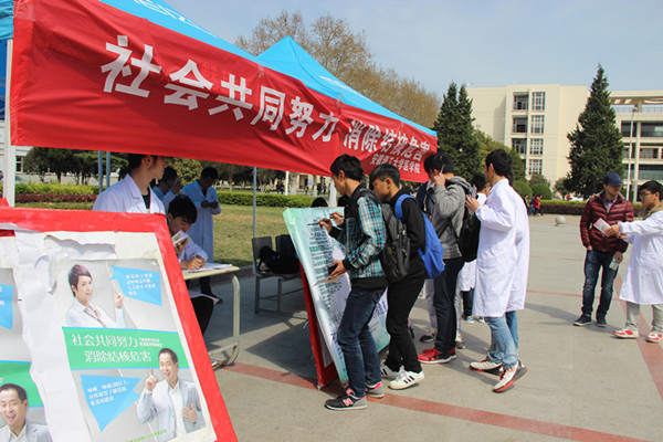 医学院高度重视结核病防治宣传活动,2015年获得“安徽省百千万志愿者结核病防治知识传播行动大学生志愿者团体培育计划”立项资助,我院是淮南市唯一获批此项目的高校单位,同时有5名同学分别获得省级防治结核病“百千万志愿者行动”优秀志愿者荣誉称号。