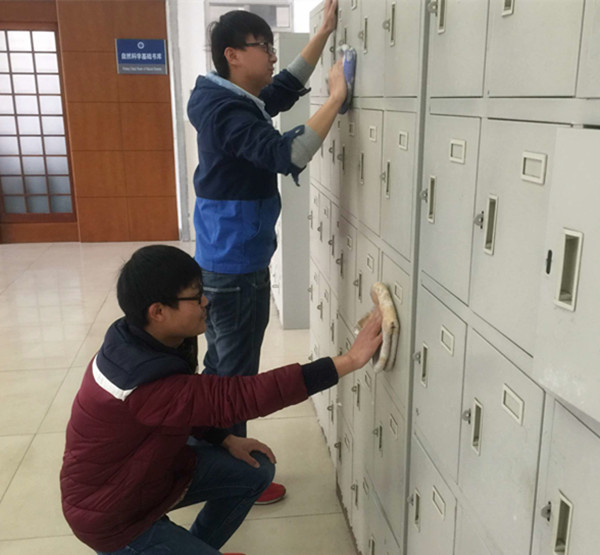 志愿者们在清理储物柜中(摄影:柏丹丹)