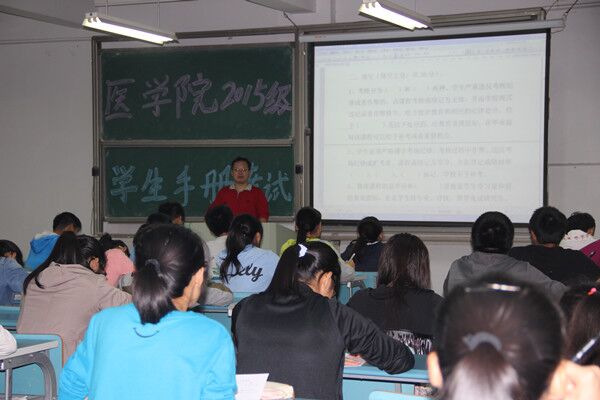 为了引导和督促学生增强遵守校规校纪的意识,提高自身文明修养,促进优良学风、考风的形成,医学院于10月20日晚,组织2015级新生在教学楼举行《学生手册》考试。