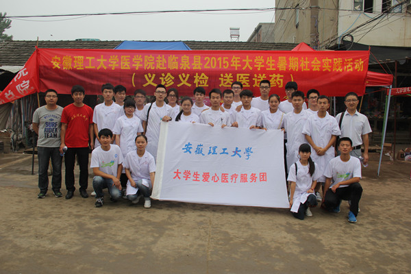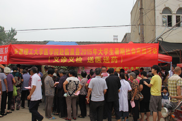 7月10日上午,我校2015年暑期社会实践国家级重点团队——大学生爱心医疗服务团在阜阳市临泉县滑集镇镇卫生院开展义诊义检帮扶等活动,我校附属医学院(淮南市东方医院集团总院)心血管内科主任李枫教授、儿科主任任彩云副教授、骨科副主任柏文昆副教授、妇产科主治医师万丽等4名长期从事临床工作的医学专家,跟随服务团一同来到滑集镇服务当地群众。活动受到了当地居民的一致好评。