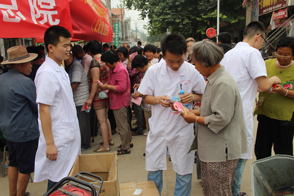 专家们就当地居民的各种疾病做出了详细的病情描述与通俗的讲解,使居民们对自己的身体状况与自身疾患有了一个全新的认识,以便实施有病早知早治早防的措施。服务团的志愿者们分工明确,各司其职,有的给现场群众赠送健康宣传资料,有的忙着引导村民们做各项体格检查,还有的协助发放免费家庭常用药品,向他们讲解常见疾病的预防知识。