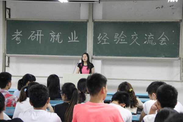 6月3日晚,医学院在西校区医教301教室举行“考研、就业经验”专题交流会,组织2015届3名优秀毕业生通过讲座交流的形式,向学弟、学妹介绍成长经历、考研体会、求职感受、学习经验。此次经验交流会的举办,进一步解除了低年级同学心中的疑虑,为他们更加自信地走向考研战场和就业市场提供了有益的帮助。