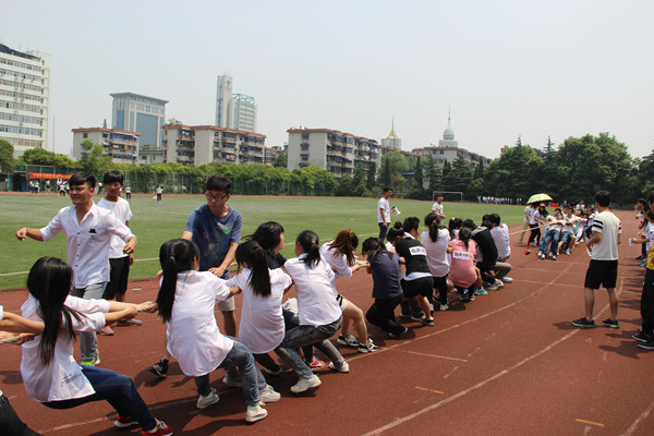 5月24日中午,2014级新生趣味运动会的运动气息还未散尽,响亮的呐喊助威声又响彻在西校区操场的上空,2014级新生拔河比赛决赛火爆上演。
