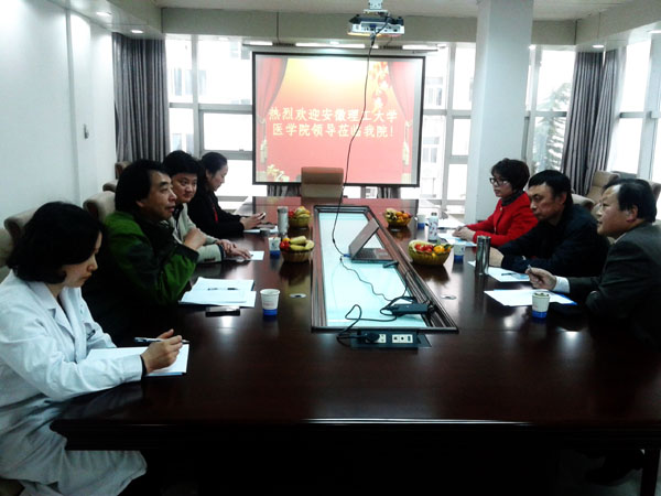 3月27日,在亳州市人民医院,双方就实习生理论学习、技能培训、带教考勤、活动住宿等方面进行了深入交流,并就2015年学生实习工作进行了洽谈。会后,叶松一行参观了医院正在兴建的临床技能训练中心,考察了实习生食堂、宿舍及自习室环境,听取了在院实习学生的心得和体会,并对实习生表达了关心,提出了要求。