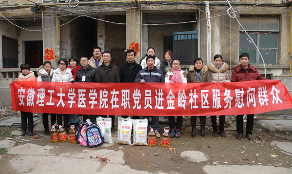 根据学校《在职党员到社区报到为群众服务工作的实施方案》,为推动党员干部转变作风,密切党群、干群关系,2月4日上午,医学院党委书记叶松、副书记张可佳带领学院在职党员代表走进金岭社区,开展慰问帮扶社区特困户活动。