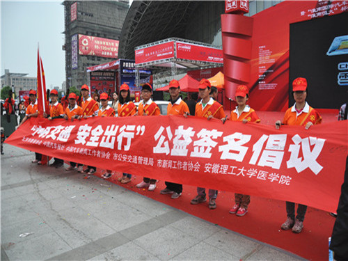 4月29日,正值“五•一”国际劳动节假期第一天,医学院团委与北京市慈善协会、中国汽车报社、中国汽车新闻工作者协会、淮南市公安交通管理局和淮南市新闻工作者协会一道,依托中国(第六届)名城汽车巡展(淮南站)活动,在市新体育馆开展“安全出行 文明交通”万人签名活动。