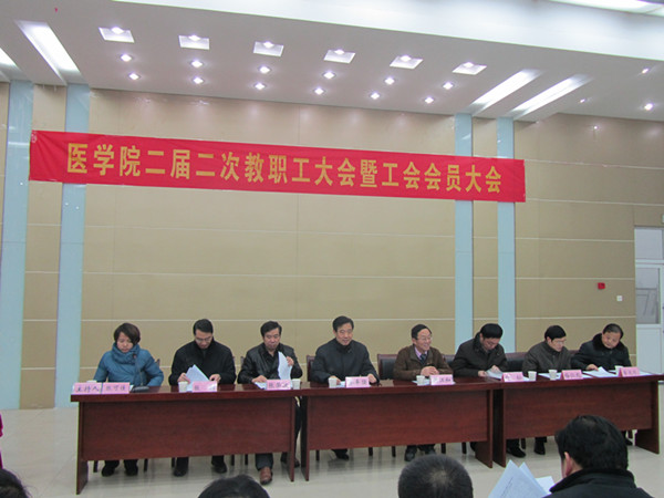 12月29日,医学院二届二次教职工大会暨分工会会员大会在西区图书馆报告厅隆重召开。校纪委书记乔丰强、校工会主席洪江如和校党委组织部张岚老师应邀出席会议。
