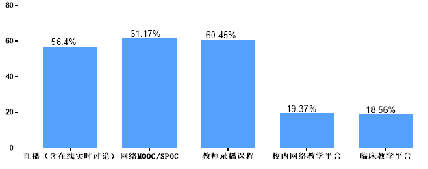 16.在线教学对临床教学的主要限制为临床技能操作、体检、问诊、TBL教学不能有效开展,对于理论授课、测试与预习影响有限。