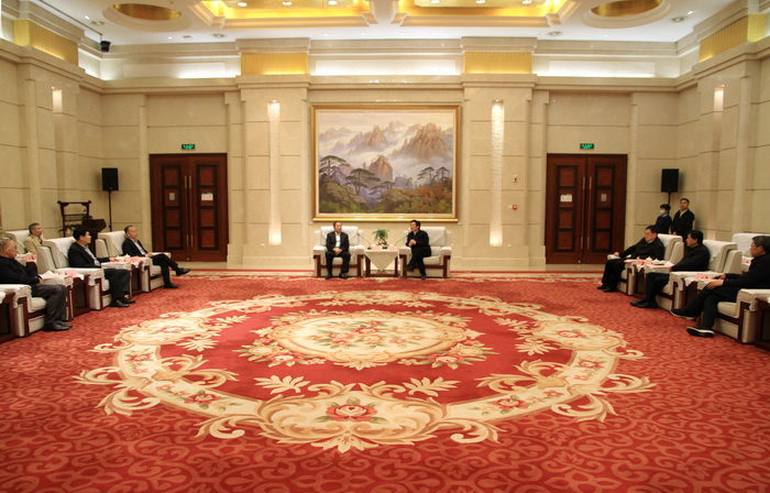 4月21日,校党委书记郭永存,党委副书记、校长袁亮带队,党委副书记虞宝桃,党委常委、副校长郑明东等一行8人赴芜湖市开展产学研对接合作交流,受到芜湖市委书记潘朝晖,市委副书记、市长贺懋燮,市委常委、秘书长张志宏,市委常委、市政府党组副书记宁波等市领导的热情接待。双方在铁山宾馆会议室举行座谈,在融洽的气氛中进行了友好交流。