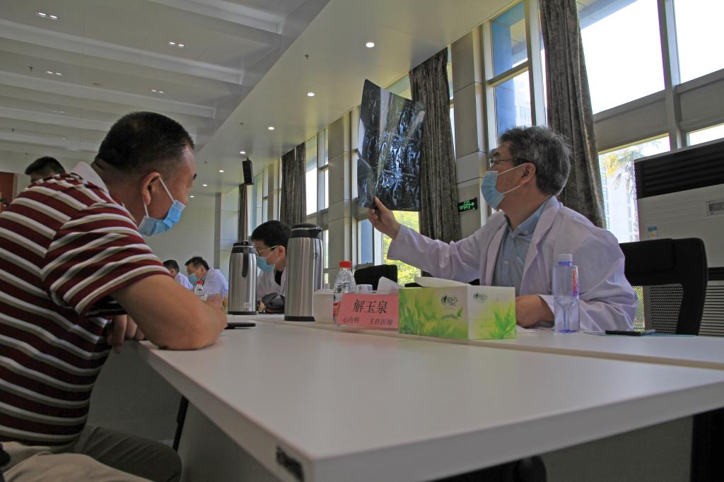 随后,义诊活动在刘庄煤矿东区视频会议室拉开帷幕。义诊现场,工人们热情高涨,很多工人拿着CT、病历来找专家问诊咨询。专家对前来问诊的工人进行细致地诊疗,耐心地解答他们的疑难问题。专家们还结合矿工的工作环境,用通俗易懂的语言为大家讲解职业病的提早预防以及一些常见病的早期自查知识,有效提高了职工的健康知识水平和健康保护意识。据统计,此次义诊活动共有约200余名职工前来咨询问诊,医疗专家的尽心尽力,受到工人们的一致好评,大家纷纷表示,平常去医疗条件较好的医院看病,挂号排队时间长,医生问诊时间短。今天在自己单位门口能和来自上海三甲医院的专家详细地沟通交流,还学习到了这么多防治职业病的建议,这样的机会真的太难得了。