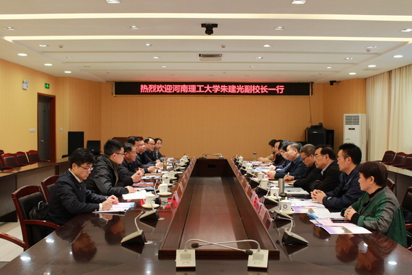 3月31日下午,河南理工大学副校长朱建光一行来校调研考察。校党委常委、副校长宫能平热情会见了来宾。双方在舜耕苑二楼会议室进行了交流座谈。