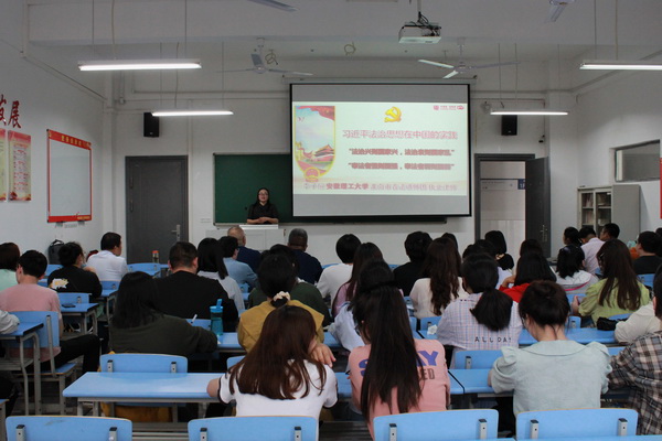 报告会上,李子煊以《习近平法治思想在中国的实践》为题,介绍了习近平法治思想的提出和形成逻辑、鲜明特质及在中国的实践。阐明了习近平法治思想的提出是顺应实现中华民族伟大复兴的时代要求,是总结中国共产党加强法治建设历史经验的必然要求,是创新马克思主义法治思想的内在要求,是解决我国法治领域突出问题的迫切需要,展现了习近平法治思想奉法强国的战略思维、崇法善治的鲜明导向、人民至上的价值立场、立己达人的历史担当的鲜明特质。并以《民法典》中的条款和实际生活中案例,重点介绍了以人民为中心的思想内涵。