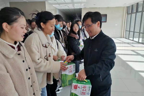 胡东与同学们分享了自己的备考经验、高分技巧和心态调整方法,鼓励同学们咬紧牙关不要放弃。他还提醒同学们复习备考的同时要注意适当锻炼,加强营养,劳逸结合,保持身心健康。活动最后,胡东为考研学子赠送牛奶等生活物品,送上学院的关心,让学生感受学校的关心和温暖。