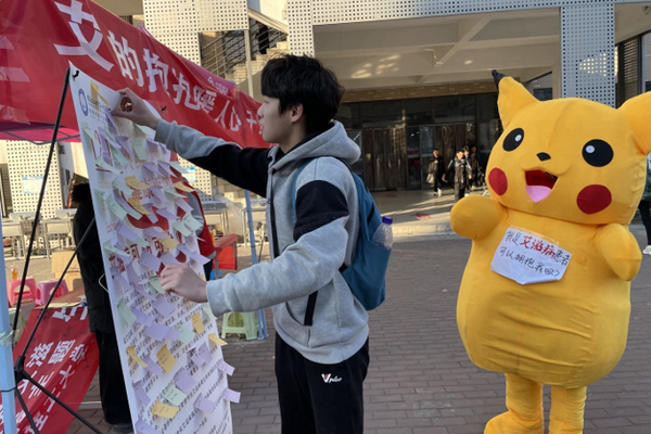 12月1日,医学院艾滋病预防知识宣讲团在义苑和仁苑食堂门前组织“12•1知艾防艾,共享健康”游园活动。志愿者为同学们发放了“防艾”宣传页和“关艾”红丝带,组织同学们参与“艾滋病人”玩偶求拥抱、签名,为“艾“留言等游园活动,引导同学们了解防艾知识,理性看待艾滋病人。