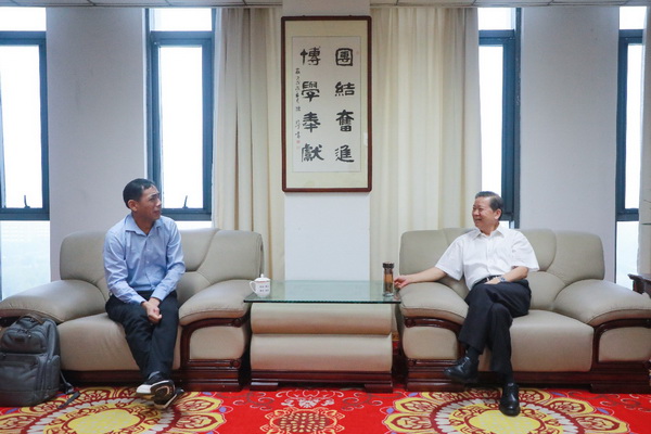 8月29日上午,校党委副书记、校长袁亮院士在行政楼1115会客室亲切会见王文新教授。