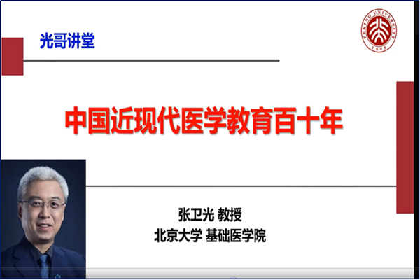 为激励2022级医学新生在今后的大学生活中坚守学医初心、践行医者使命, 9月26日晚,北京大学医学部张卫光教授线上为2022级新同学作励志报告。报告会在校国家重点实验室报告厅举行。医学院院长胡东主持报告会。