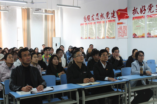 学院党委领导班子成员、党支部书记、学生辅导员、教师党员、在校学生党员和部分学生发展对象聆听了报告。