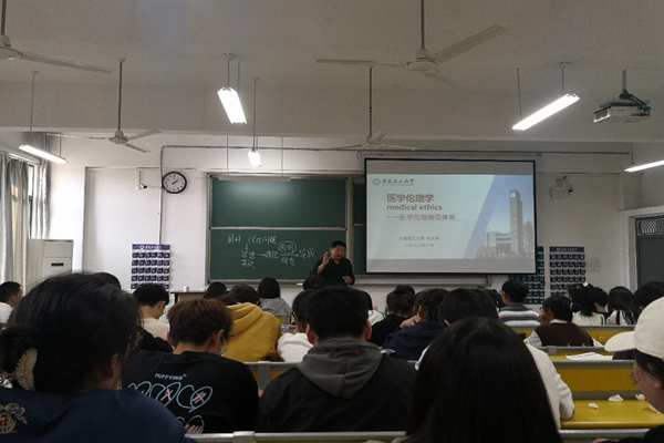 11月10日下午,在明理南212教室,医学院杜久伟教授主讲了《医学伦理学》课程的随堂示范课,他针对“医学伦理规范体系”章节内容,围绕医学基本原则在新时期卫生工作方针中的体现;尊重原则、不伤害原则、有利原则、公正原则在医疗决策中的应用等,展示了如何进行课程思政内容的教学。