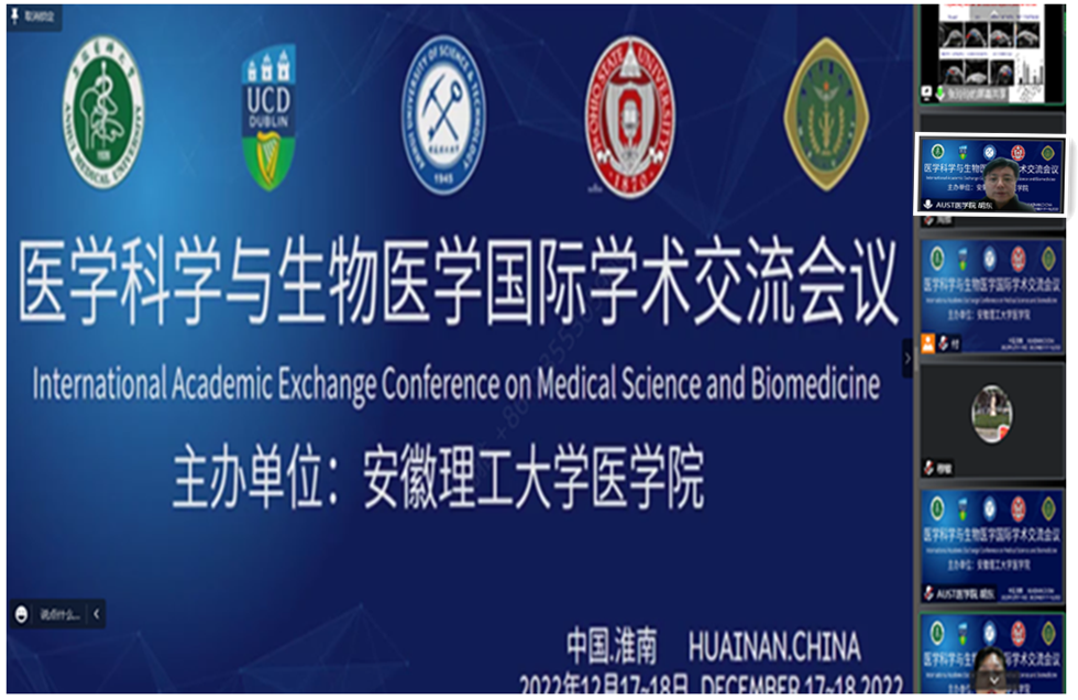 12月17日至18日由安徽理工大学医学院主办的医学科学与生物医学国际学术交流会议(International Academic Exchange Conference on Medical Science and Biomedicine)在安徽省淮南市(线上会议)召开。会议共分为两场,医学院院长胡东和医学院副院长陆军分别主持。