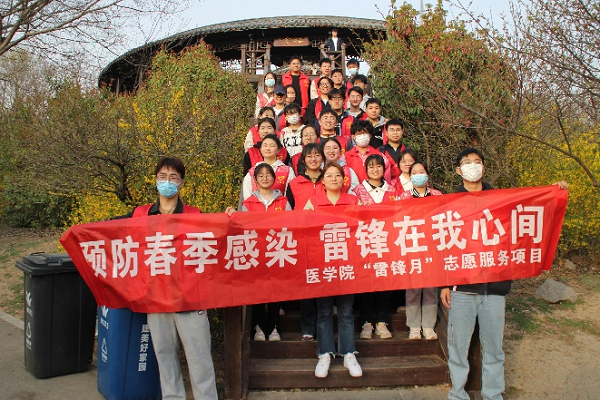为弘扬“为人民服务”的奉献精神,鼓励当代青年向雷锋同志学习,发挥模范作用,在医学院团委的号召下,医学院21-7班和21-10班的志愿者分别到养心居老年公寓和舜耕山公园开展以“敬老从心开始,助老从我做起”和“预防春季传染病,雷锋精神存我心”为主题的志愿服务活动。