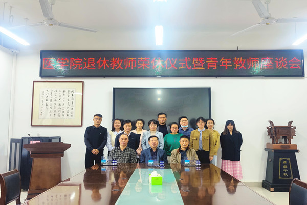 为弘扬优良师德师风,营造尊师重教的良好氛围,4月14日下午,医学院在崇仁楼C114召开退休教师荣休仪式暨青年教师座谈会,荣休教师张荣波、刘国礼、李庆、周慧生参加了座谈会。