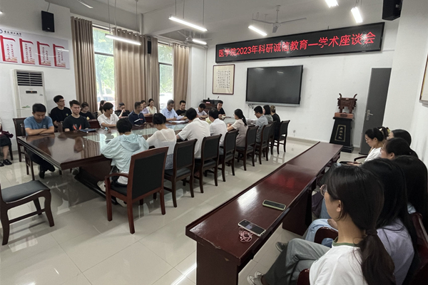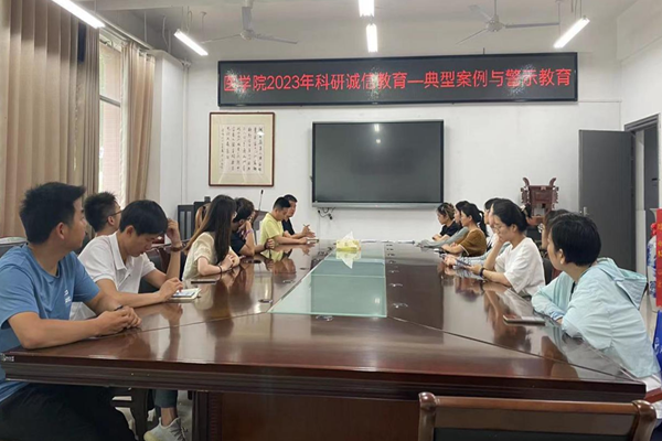 学院集体组织教师及在校研究生召开《医学院2023年科研诚信教育-学术座谈会》,座谈会由陆军副院长主持,会上陆军副院长带大家学习了《关于进一步加强科研诚信建设的若干意见》《关于进一步弘扬科学家精神加强作风和学风建设的意见》《关于进一步完善失信约束制度构建诚信建设长效机制的指导意见》等相关文件,并倡导遵守学术道德,提高诚信意识和水平,推动科技创新,不断提高医学院科研水平。会上,老师与同学们积极交流探讨学术诚信的重要性及学术不端的危害,表示积极树立正确的学术观念和诚信观念。师生们积极发表自己的感受与体会,表示一定做好学术诚信。