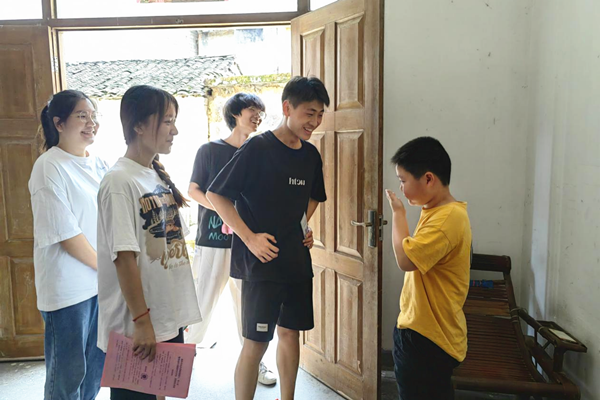 8月14日成员们利用村委会现有活动室、农家书屋和村小学等条件,积极开展以“假期小课堂”为主体的“展活力献爱心,关爱留守儿童成长”志愿服务活动。通过“大学带小学,大手拉小手”,丰富了村小学生的假期生活,解决了学生的假期学业没人辅导、沉迷于手机不愿学习等问题。