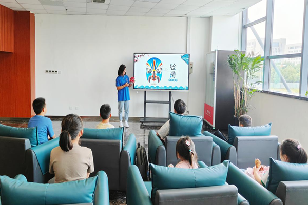志愿者在淮南市图书馆向孩子们介绍京剧脸谱
