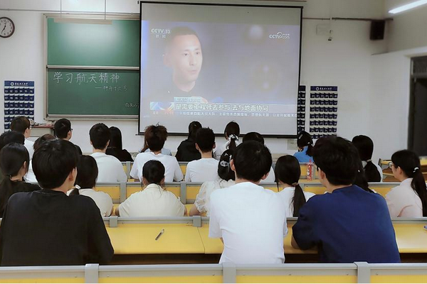 为培养爱国之情,砥砺强国之志,大力弘扬载人航天精神。5月15日,医学院组织23级全体学生在天工南416集体观看《中共中央 国务院 中央军委关于给景海鹏颁发“特级航天功勋奖章” 授予朱杨柱、桂海潮“英雄航天员”荣誉称号并颁发“三级航天功勋奖章”》的新闻报道。