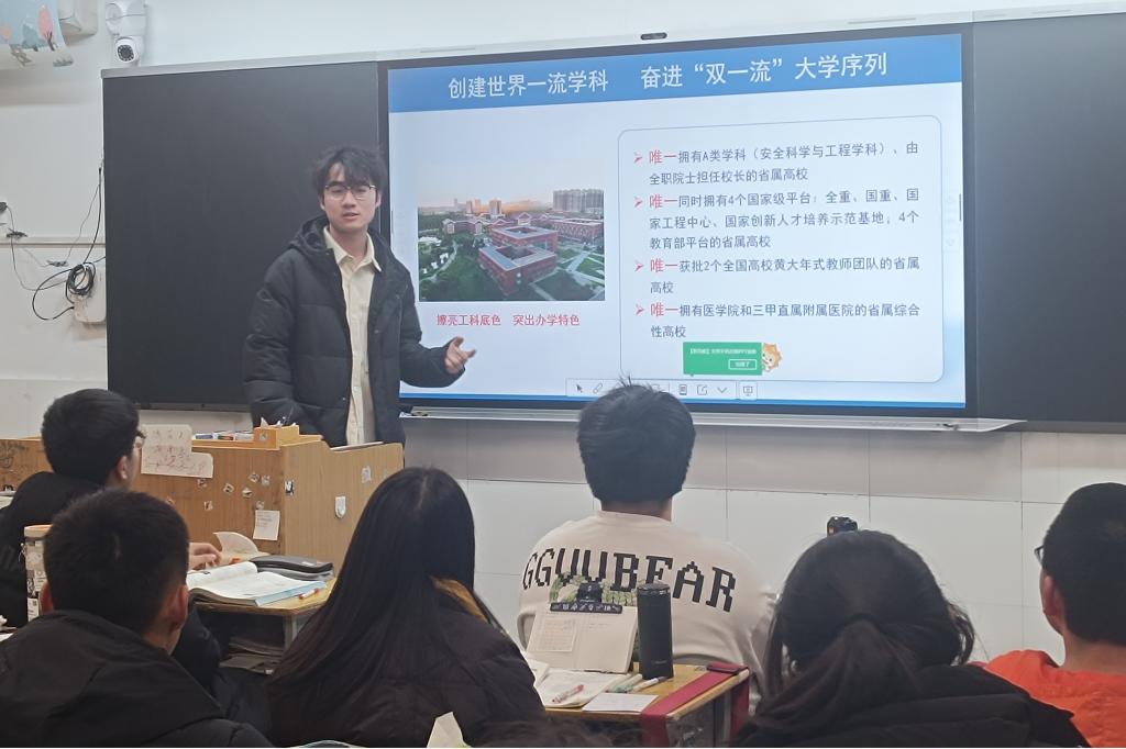 王昊同学在高中母校宣讲(图片:实践学生提供)