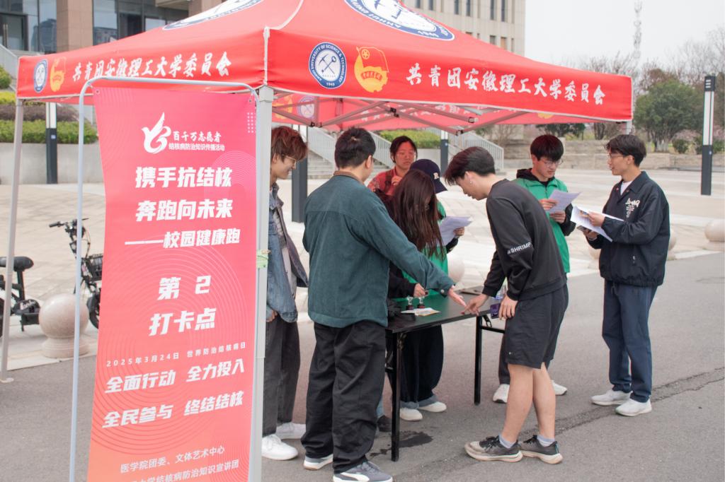 为普及结核病防治知识,倡导健康生活理念,安徽理工大学结核病防治知识宣讲团于3月23日在至诚体育场成功举办“携手抗结核,奔跑向未来”校园健康跑活动。此次活动通过趣味运动与健康宣教相结合的形式,吸引了两百多名学生参与,现场氛围热烈,展现了校园青春活力与健康正能量。淮南市疾病预防控制中心到场指导活动。