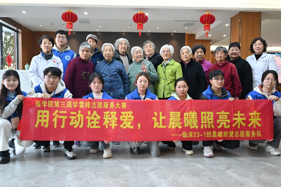临床23-1班晨曦助爱志愿服务队与老人们合影