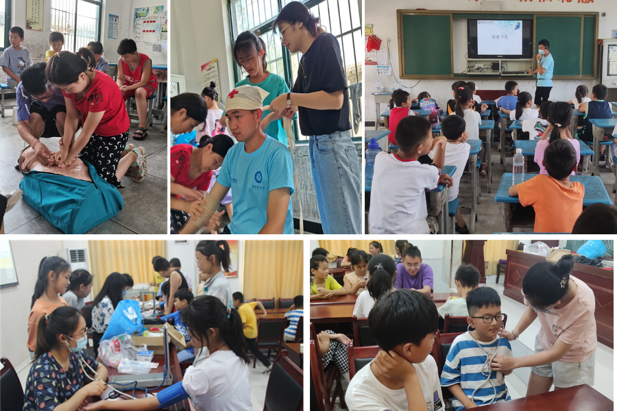 暑假期间,志愿者开展各类暑期社会实践活动,针对日常生活中遇到的心搏骤停、气道梗阻等危急情况,以心肺复苏的程序及操作技术为重点,向家乡村民详细讲解和示范心肺复苏、海姆立克急救法等急救措施,并借助CPR模型和训练马甲展开现场实操演示。在场村民认真聆听每一个动作要领,不时还会向志愿者们询问姿势的关键要点。在志愿者的指导下村民亲身体验急救过程,加深理解。