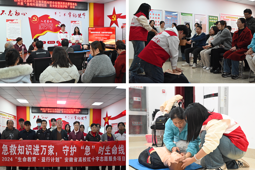 为积极响应社会需求,将应急救护知识送到社区,为居民群众的生命安全保驾护航。志愿者计划前往淮南市新华村(我校乡村振兴定点扶贫村)、园南社区、小街社区等。此次科普培训活动内容涵盖红十字运动起源、应急救护、心肺复苏、创伤救护、常见急症、意外伤害以及突发事件等多个方面,现场通过深入浅出的讲解和生动的现场演示,向居民们传授实用的急救知识和技能。让居民们不仅学习了理论知识,还积极参与实操演练,如心肺复苏、海姆立克急救法以及骨折和创伤包扎等,提高了自救互救能力,遇到突发事件时能够更加从容应对。