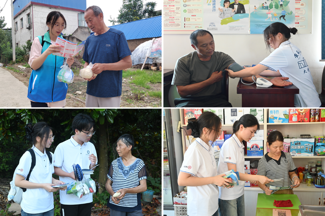 2024年盛夏,面对城乡医疗资源分布不均、基层群众健康意识薄弱的现实问题,她主动请缨担任暑期“三下乡”社会实践团队负责人,带领队员深入大别山腹地。在宣城广德闷热的村卫生室,她为佝偻着背的老汉测量血压;在六安金寨的晒谷场上,她和队员举着喇叭演示海姆立克急救法;在淮南社区养老院,她带领团队为老人们科普脑卒中知识,一起完成预防卒中健康操;在护工和老人们脸上的笑脸让她久久不能忘怀。当医学誓言镌刻在每分每秒的守护中,她深刻体悟到:志愿服务不仅是技术的传递,更是“有时治愈,常常帮助,总是安慰”的医者本心。