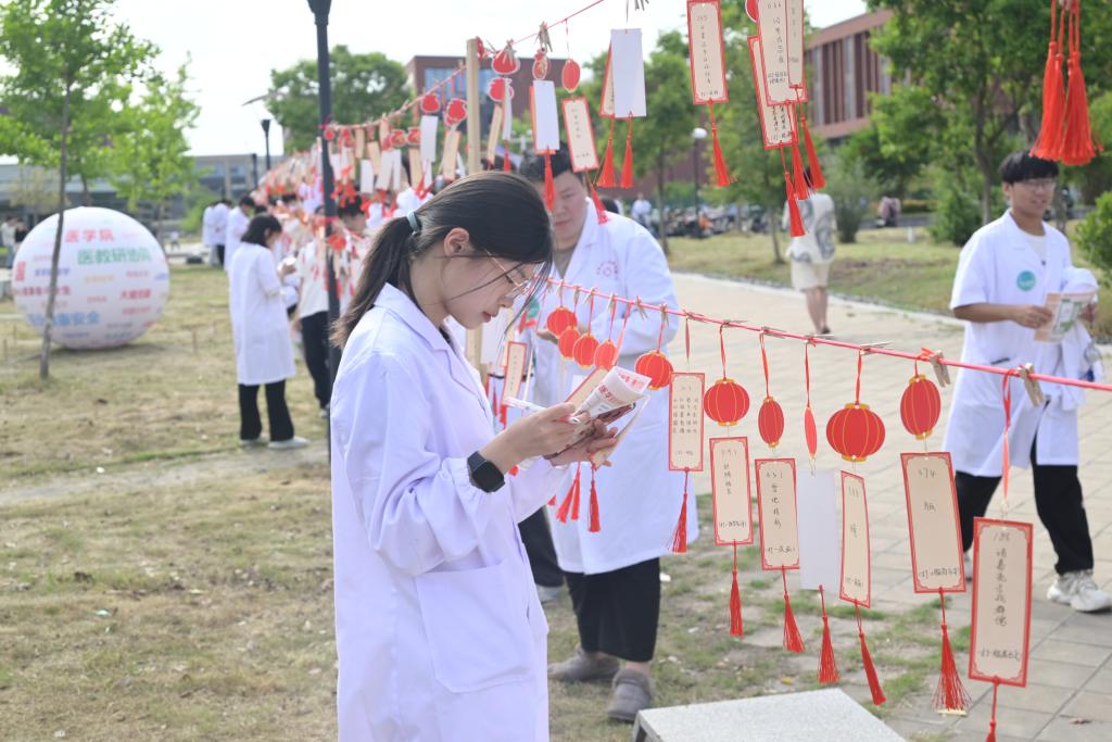 灯谜巧妙融合医学知识与趣味谜面,涵盖人体器官奥秘、现代医学技术等内容。同学们专注思考,交流探讨,在潜移默化中加深对医学知识的理解。