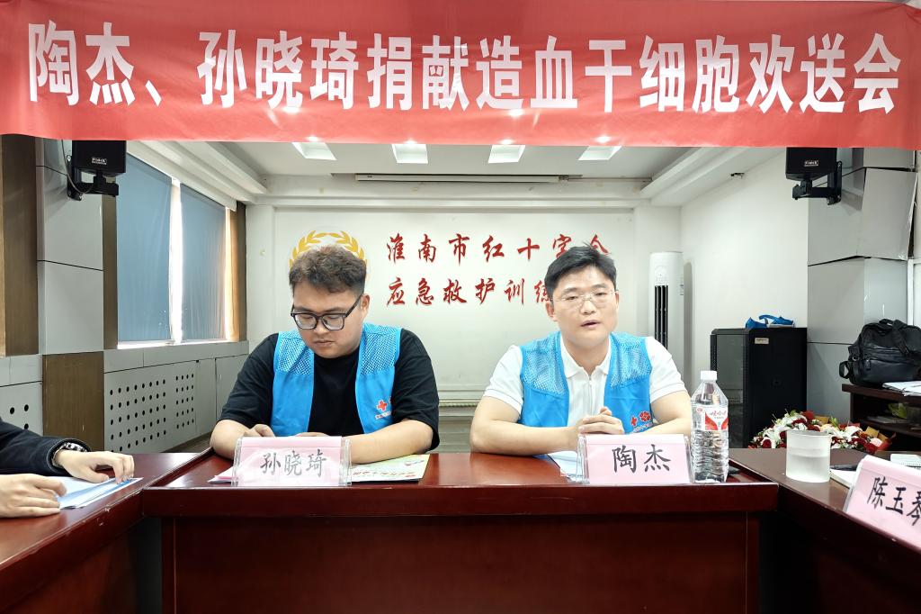 5月22日上午,淮南市红十字会联合我校在市财金大厦七楼会议室举行造血干细胞捐献者、医学院2017届临床医学专业毕业生陶杰赴合肥捐献欢送仪式。淮南市红十字会常务副会长兼秘书长陈玉琴,校团委、医学院有关负责人、志愿者代表等参加欢送仪式。