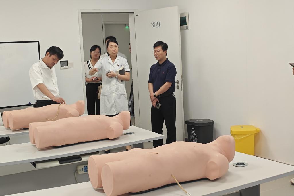 会后,在教学部主任赵雪薇的陪同下,胡东一行实地查看了医院病房、护士站、病房及物料传递系统、临床技能中心、教室、自习室和学习活动室。